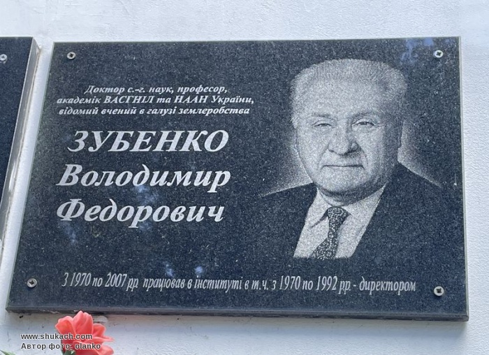 Встановлена на фасаді Інституту цукрових буряків НУААН на честь видатного вченого, академіка В.Ф.Зубенка, який 22 роки був директором цього інституту.