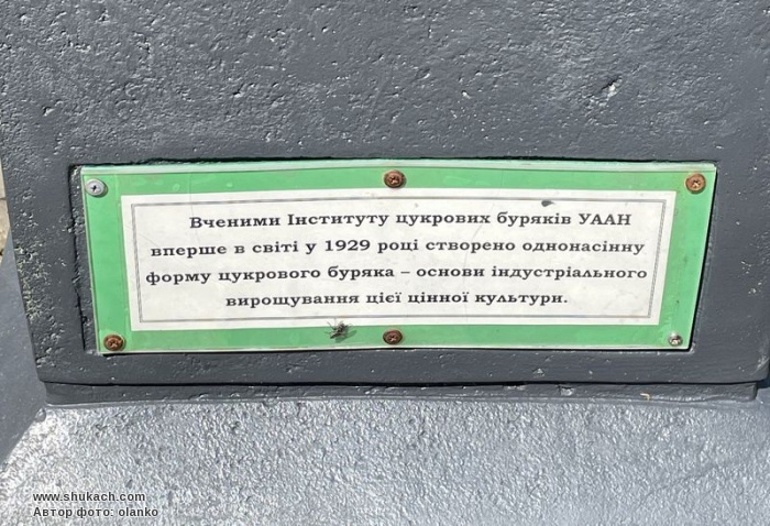Встановлений на території Інституту цукрових буряків УААН у 2008 році.