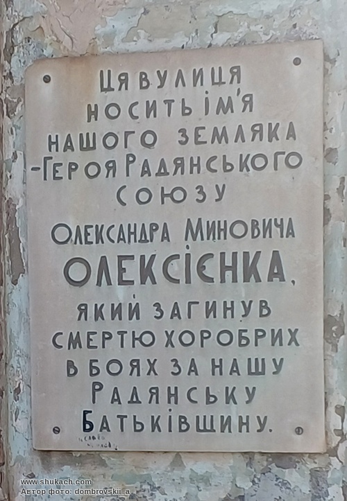 Ця вулеця носить імя нашого земляка - Героя Радянського Союзу Олександра Миновиача Олексієнка, який загинув смертью хоробрих в боях за нашу Радянську Батьківщину.