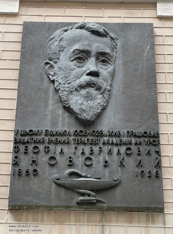 Бронзова дошка встановлена у 1972 році на честь видатного українського лікаря, академіка Ф.Г.Яновського. У 1903-1928 роках він жив і працював у цьому будинку. Автори – скульптор О.П.Скобліков, архітектор А.Ф.Ігнащенко.