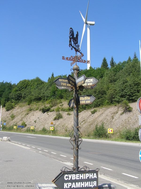 с. Латірка. Вказівник відстаней на Латірському перевалі.