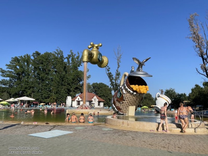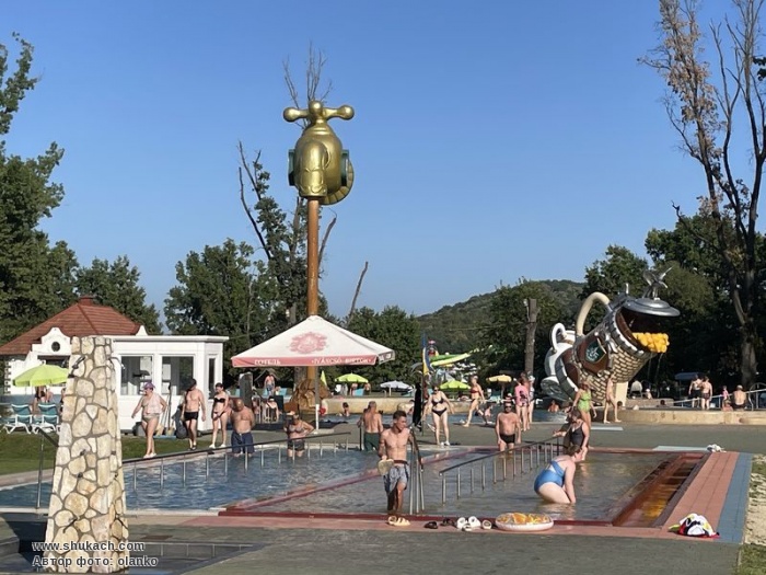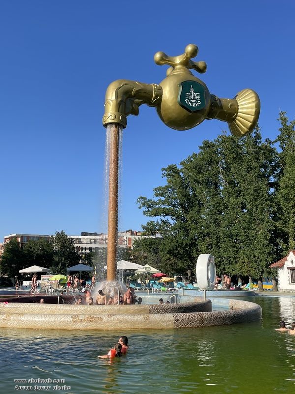 Візитівкою оздоровчо-рекреаційного комплексу «Термальні води Косино» є «Золотий кран здоров’я» і чотири басейни-джакузі. Унікальний, майже 16-метровий фонтан-басейн будували більше року. Цей «Золотий кран здоров’я», найвищий в Україні. Подібні атракціони є лише в Бельгії, Іспанії, Швейцарії, США. Фонтан вже прозвали ілюзією, адже здалеку здається, ніби гігантський кран просто завис у повітрі! Золотий кран оточують 4 фонтани-джакузі з величезними саморобними конструкціями, звідки в басейни подається цілюща термальна вода. Це 5-метровий келих пива і 5,3-метрова пляшка вина, 3-метрові фляга палинки і чашка кави.