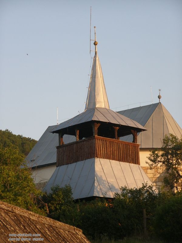 Поруч із церквою стоїть дерев’яна каркасна двоярусна дзвіниця, добудована у XVIII столітті. Замість фундаменту під дерев’яні основні опори були закладені великі круглі камені в андезитового туфу. Два таких камені були викопані під час останнього ремонту церкви. Один із них залишили біля дзвіниці для огляду, а інший перенесли ближче до будинку священика. Спочатку дзвіниця була вкрита дерев’яними дощечками. Тепер же її перекрили бляхою.
