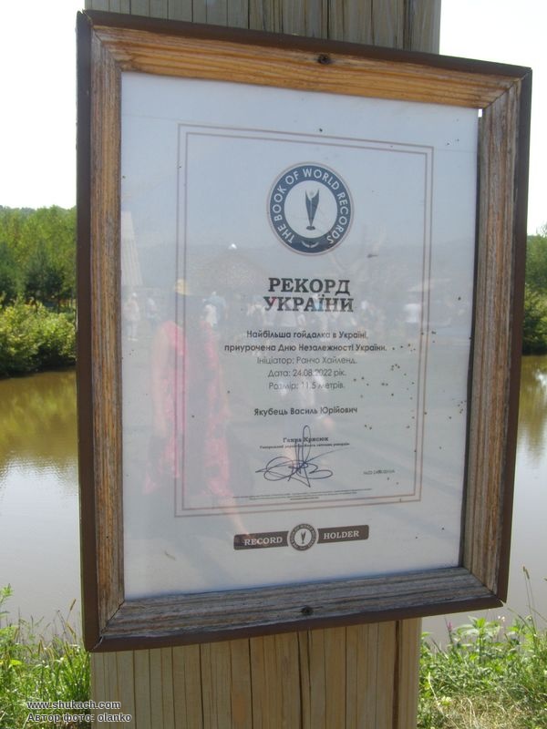 До Дня Незалежності у 2022 році на Закарпатті представники Книги світових рекордів зафіксували новий рекорд України – найбільша гойдалка висотою 11,6 метра. Її змайстрували та встановили на фермерському господарстві “Ранчо Хайленд”, що на Хустщині. Ініціатори рекорду – голова ФГ “Ранчо Хайленд” Василь Якубець із дружиною Лесею.