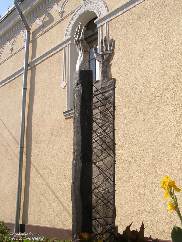 Встановлений на честь єпископа Закарпатської реформатської церкви Лайоша Гулачі у 2016 році. Автор – скульптор Петро Матл. Символізм скульптури – піднятих людських рук до неба – полягає в усвідомленні віри та волі, які дозволяють вистояти у важкі часи, а також підтримувати тих, хто перебуває поряд.