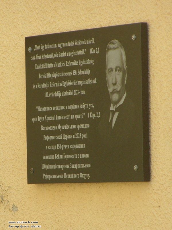 м. Мукачево. Меморіальна дошка єпископу Бейлі Бартоку.