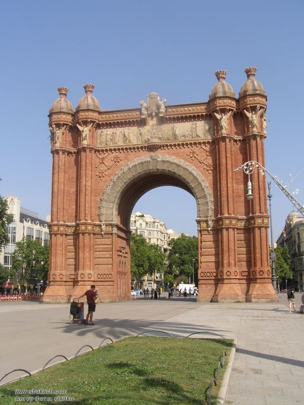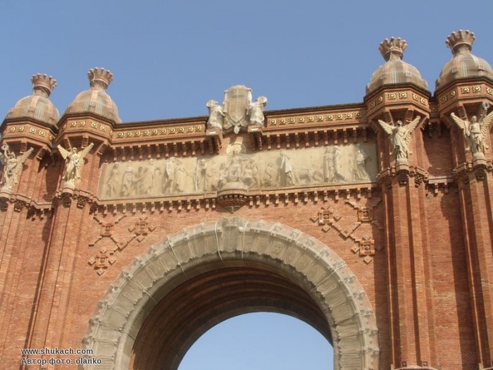 Тріумфальна арка була задумана як вхід на Всесвітню виставку в Барселоні 1888 року та є пам'яткою цієї важливої події в історії міста. Вона була відновлена в 1989 році. Це робота архітектора Хосепа Віласеки-і-Казанови, що містить групу скульптур. Фриз Хосепа Реньєса зображує Барселону, яка приймає країни-учасниці виставки. Інший фриз на протилежному боці, роботи Хосепа Льїмони, зображує розподіл нагород учасникам виставки. На правій стороні арки Антоні Віланова створив алегорії промисловості, сільського господарства та торгівлі, а на лівій Торквато Тассо представляв мистецтво та науку. У кутах було розміщено чотири крилаті герби роботи Мануеля Фукси та Пере Карбонелья. На внутрішній стороні арки було розміщено герби 49 іспанських провінцій.