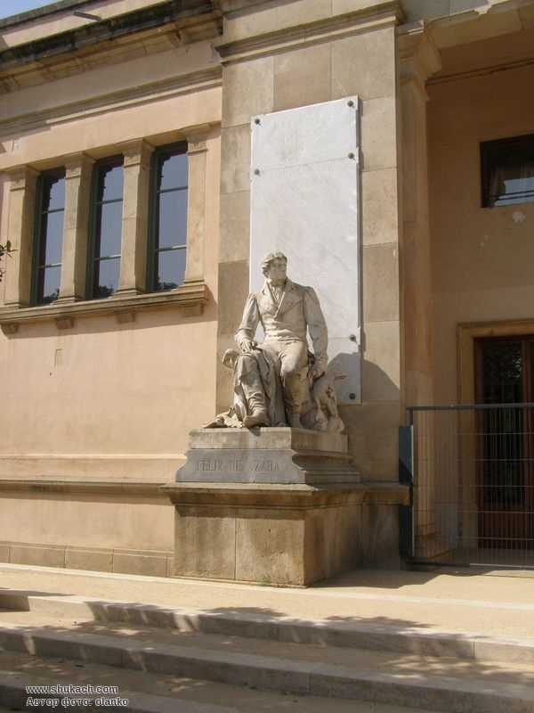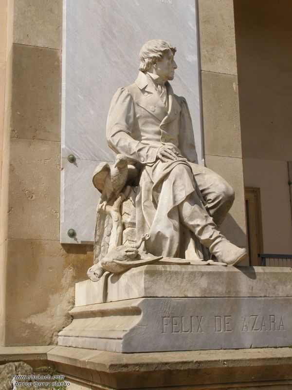Встановлений у 1886 році ліворуч від входу у виставковий центр Мартореля. Мармурова скульптура зображує військового інженера, картографа та натураліста Фелікса де Азара (1746-1821), що сидить. Карта, яку він тримає в одній руці, символізує його роботу картографа, а тварина та птах з кожного боку вказують на роботу, яку він виконував як натураліста в Парагваї та Ріо-де-ла-Плата. Автор – скульптор Едуард Б. Аленторн.