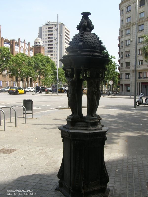 У Барселоні зараз є лише два оригінальних фонтани Уоллеса: один на Пасео-де-Грасія та один на Рамбла. Цей, на розі вулиць Gran Via de les Corts Catalanes і Carrer de la Marina, – сучасна репліка.