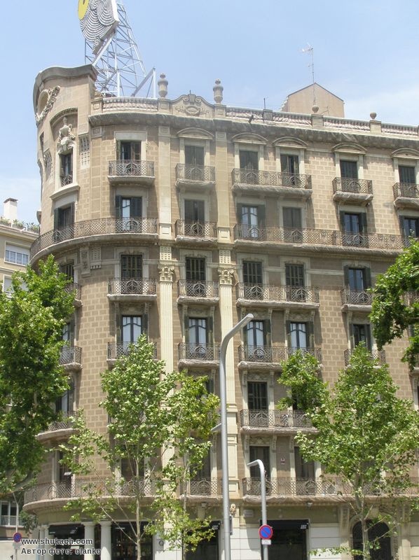 Будівля 1930 року, що займає трикутну ділянку на перетині вулиць Діагональ та Майорка, із заокругленим скосом та увінчаною піднятим фронтоном хвилястого профілю. На першому та п'ятому поверхах наріжжя оточене балконом з кованими поручнями. Декоративні елементи, квіткові рельєфи, вази та тосканські колони на першому поверсі взяті з класицистичного репертуару, звичайного в естетиці епохи Ноучентіста.