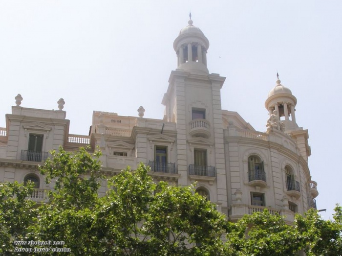 Вісь наріжжя виступає у вигляді вигнутого коліна, підкресленого двома вежами, увінчаними невеликими вежами. Два корпуси, що виходять на Діагональ, мають монументальні входи та еркери на першому поверсі. Проект датується 1929 роком, його розробив архітектор Гаєта Кабаньєс Марфа, в еклектичному монументалістському стилі в лінії будівель, що зводилися в той час на Віа Лаєтана.